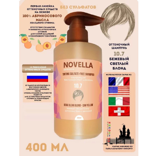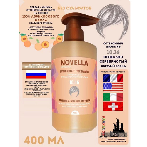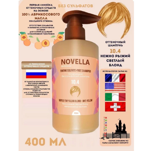 Novella Abrikosova Шампунь Бессульфатный ANTI YELLOW, 10.4, Нежно-рыжий светлый блонд, 400мл