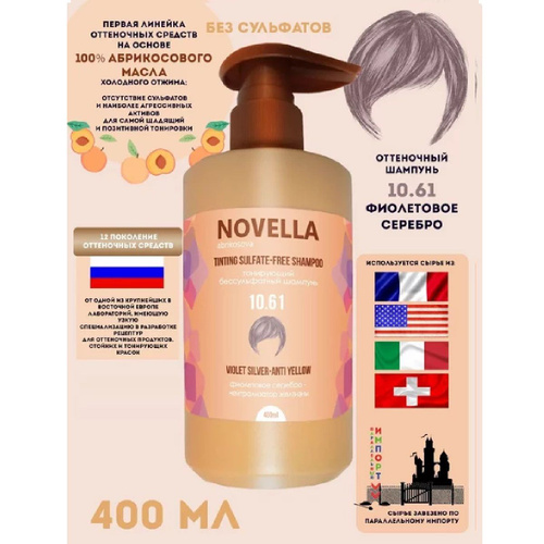 Novella Abrikosova Шампунь Бессульфатный ANTI YELLOW, 10.61, Фиолетовое серебро, 400мл