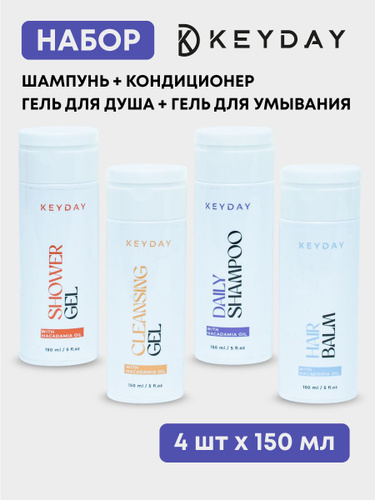 KEYDAY Набор косметический шампунь + бальзам(кондиционер) + гель для душа + гель для умывания, 4*150 мл