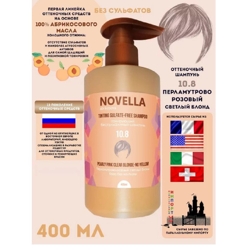 Novella Abrikosova Шампунь Бессульфатный NO YELLOW, 10.8, Перламутрово-розовый светлый блонд, 400мл