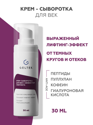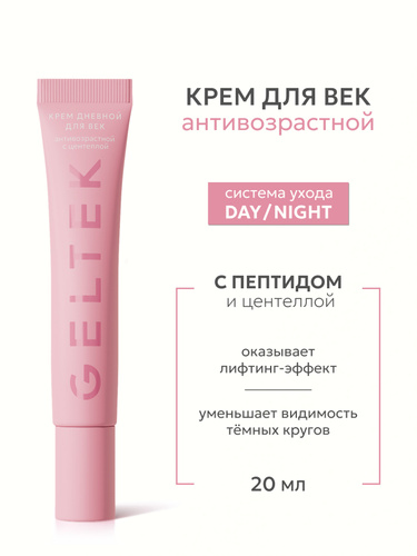 Гельтек Крем для век антивозрастной увлажняющий с пептидами, кофеином и центеллой, 20 мл