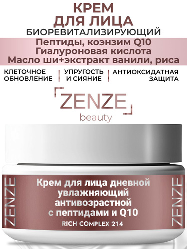 ZENZE Крем для лица увлажняющий антивозрастной c пептидами, гиалуроновой кислотой и Q10 / против морщин интенсивное увлажнение и питание для лица и кожи вокруг глаз, 50 мл