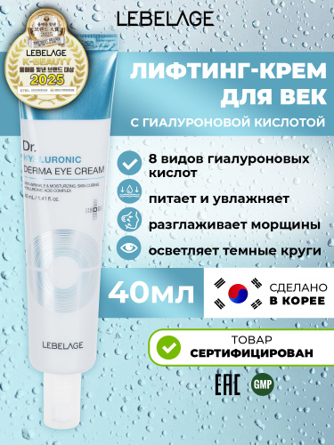 LEBELAGE Крем для глаз (век) с Гиалуроновой кислотой Восстанавливающий Derma Eye Cream Dr. Hyaluronic, 40 мл