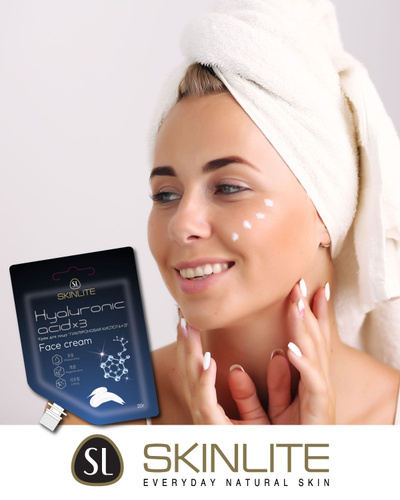 Skinlite Крем для лица Гиалуроновая кислота х3 с коллагеном и пептидами, глубокое увлажнение, легкая текстура