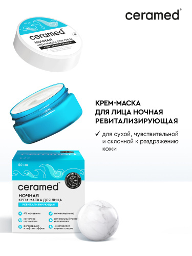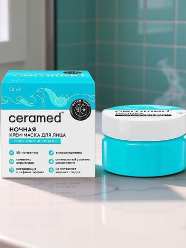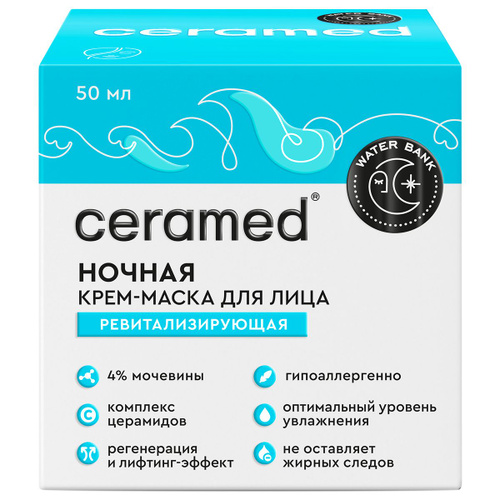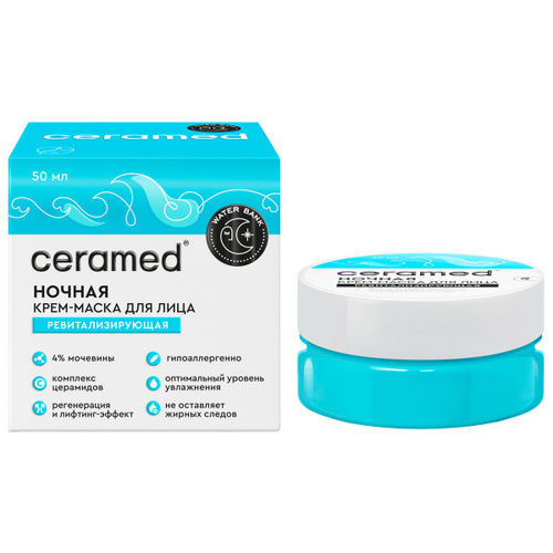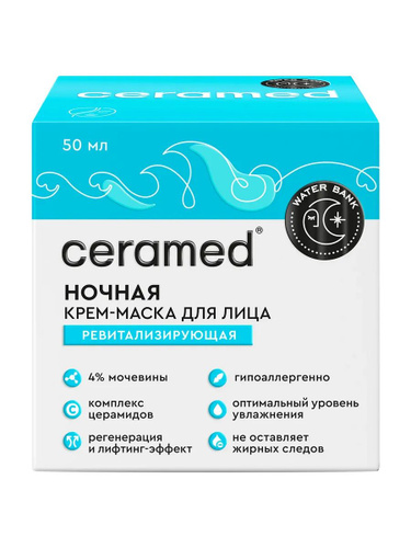 Крем-маска для лица ночная Ceramed Water Bank, ревитализирующая, 50мл