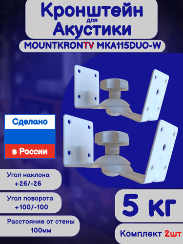Кронштейн для акустики MOUNTKRONTV MKA115DUO-W комплект 2шт,на стену,наклонно-поворотный,белый