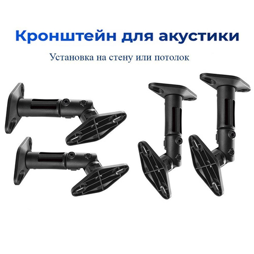 Кронштейн для колонок настенный ARTKRON SB-28 (чёрный)/ Крепление потолочное для акустики / Полки для акустических систем на стену наклонно поворотный комплект две полки.