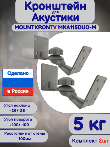 Кронштейн для акустики MOUNTKRONTV MKA115DUO-M серый металлик,комплект 2шт,на стену,наклонно-поворотный