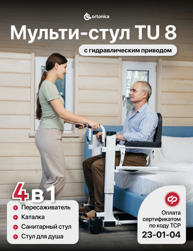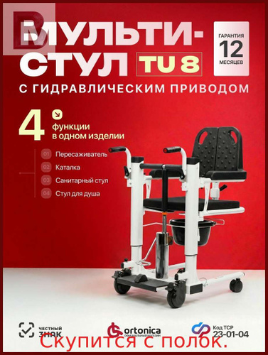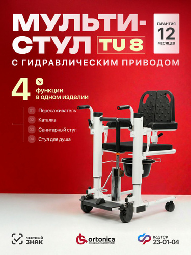 Ortonica TU 8/ Кресло-коляска каталка с подъемником и санитарным оснащением для пересаживания и ухода за инвалидами и пожилыми, ширина сиденья 45,5 см