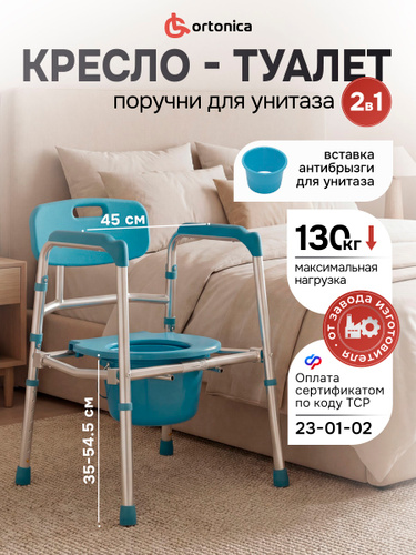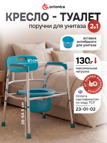 Ortonica TU 2 Кресло туалет для пожилых людей и инвалидов с мягким сиденьем и подлокотниками, санитарный стул регулируется по высоте, нагрузка до 130 кг