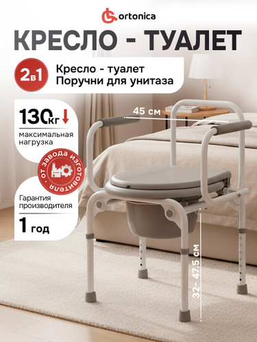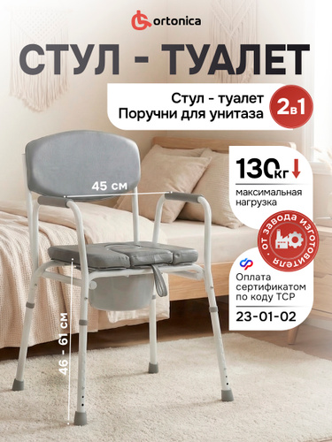 Ortonica TU 1 45 см/ Кресло туалет для пожилых людей и инвалидов с санитарным оснащением, регулируемый по высоте, нагрузка до 130 кг, ширина сиденья 45 см