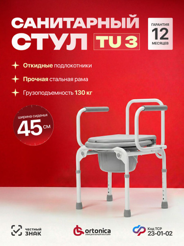 Ortonica TU 3 RU Кресло стул туалет для пожилых людей и инвалидов с санитарным оснащением с откидными подлокотниками регулируемый по высоте, до 130 кг