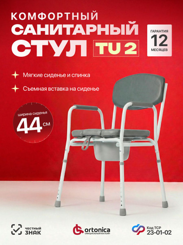 Ortonica TU 2 Кресло туалет для пожилых людей и инвалидов с мягким сиденьем и подлокотниками, санитарный стул