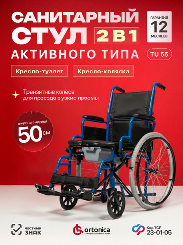 Ortonica TU 55 (50) Кресло-коляска складная универсальная, туалет для инвалидов и пожилых людей, с санитарным оснащением