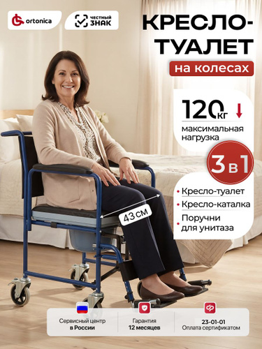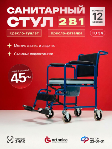 Ortonica TU 34 (45) Кресло-каталка туалет, с санитарным оснащением на колесах, для инвалидов и пожилых людей