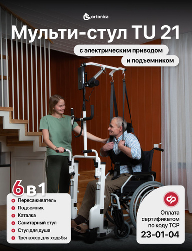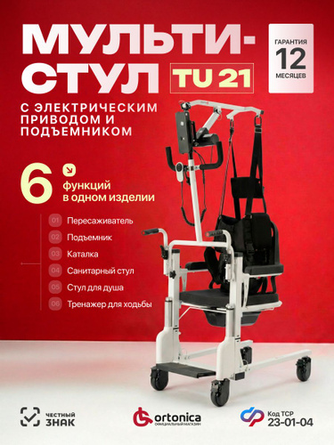 Ortonica TU 21/ Кресло-каталка, подъемник для инвалидов, тренажер для восстановления с санитарным оснащением для пересаживания и ухода за инвалидами и пожилыми, ширина сиденья 45,5 см