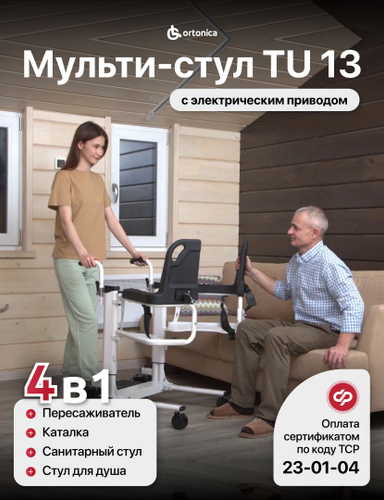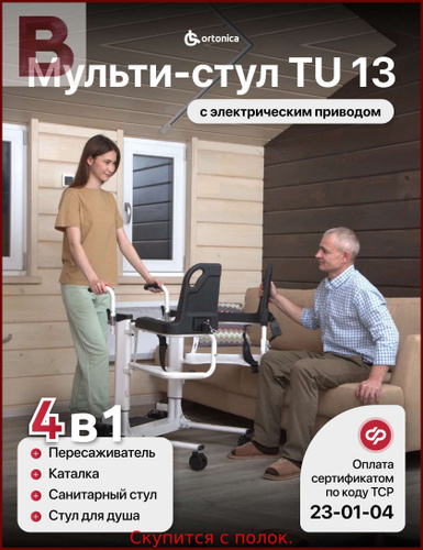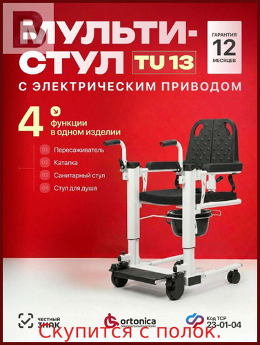 Хит продаж.Ortonica TU 13/ Кресло-коляска каталка с дистанционным подъемником и санитарным оснащением для пересаживания и ухода за инвалидами и пожилыми, ширина сиденья 45,5 см