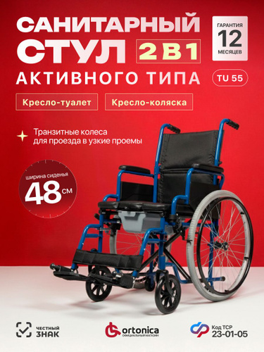 Ortonica TU 55 (48) Кресло-коляска туалет для пожилых людей и инвалидов, универсальное с санитарным оснащением
