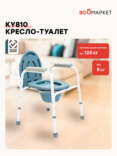 Кресло туалет для инвалидов и пожилых людей КY810 (без колес, с санитарным оснащением, для взрослых, нагрузка до 125 кг, по сертификату ФСС ТСР 23-01-02)