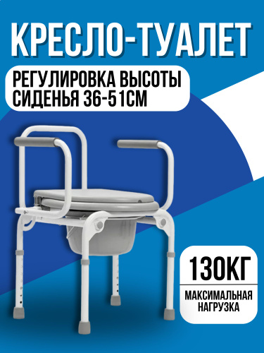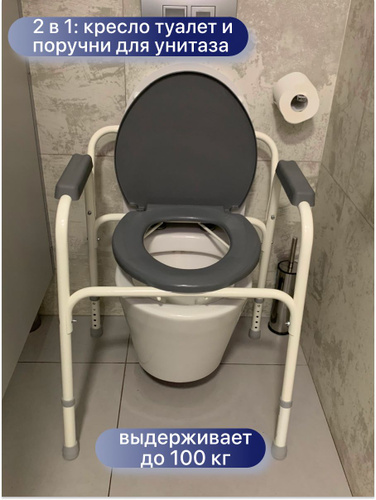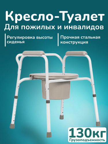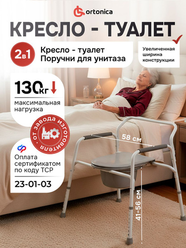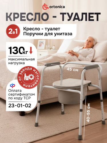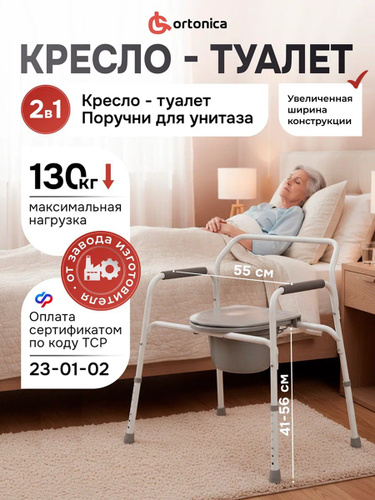 Ortonica TU 1 55 см (22")/ Кресло туалет для пожилых людей и инвалидов, санитарный стул на унитаз регулируемый по высоте, нагрузка до 130 кг, ширина сиденья 55 см