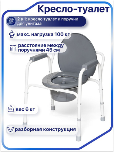 Кресло туалет медицинский разборный Barry WC100 для взрослых, пожилых людей и инвалидов, кресло-стул с санитарным оснащением без колес по сертификату, код сфр 23-01-02