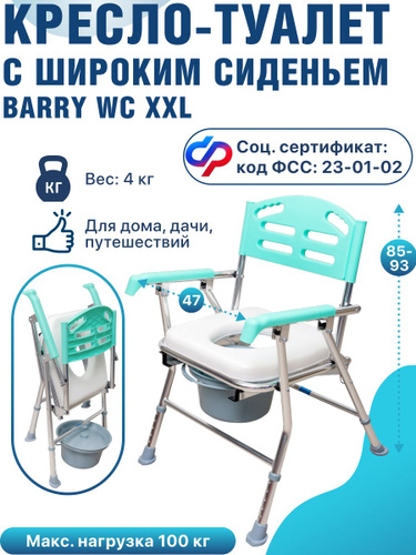 Кресло туалет для инвалидов и пожилых людей, складной санитарный стул Barry WC100, кресло стул с санитарным оснащением без колес по сертификату 23-01-02
