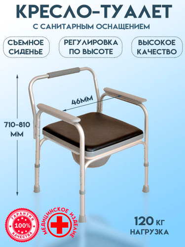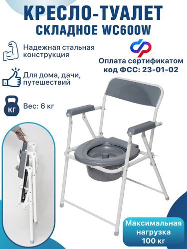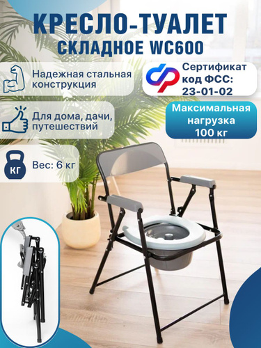 Кресло-туалет складное, грузоподъемность 100 кг. Кресло-стул со съемным санитарным оснащением без колес сертификат 23-01-02