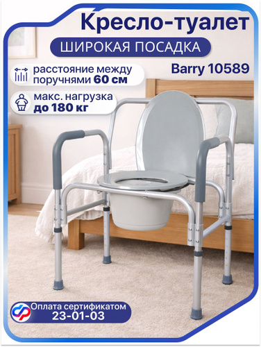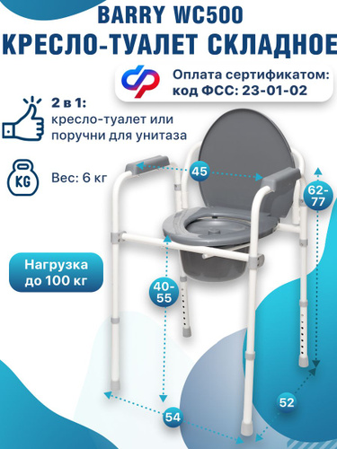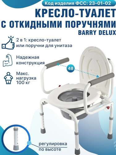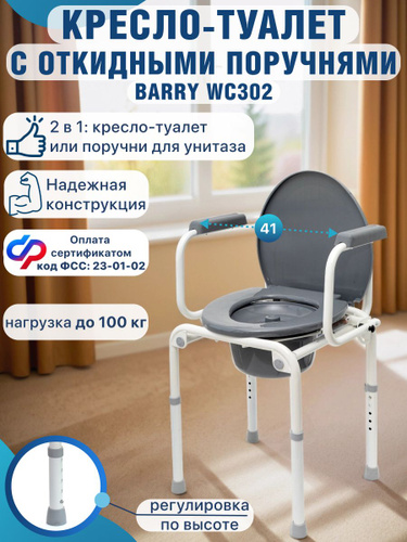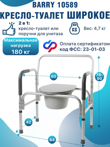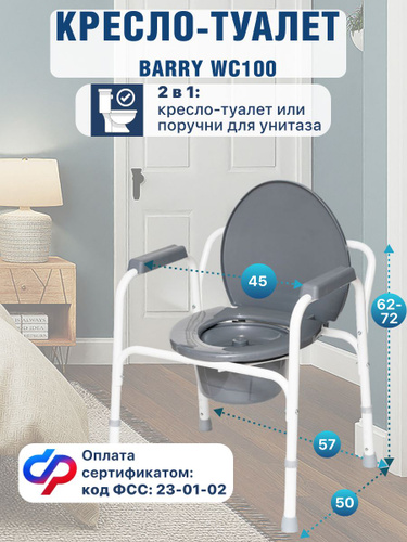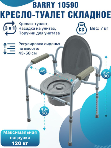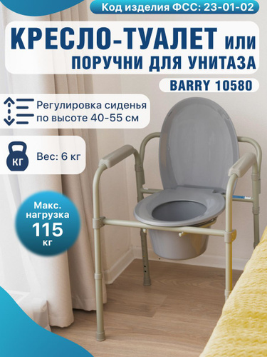 Кресло-туалет Barry WC100 для взрослых пожилых и инвалидов, кресло-стул медицинский с санитарным оснащением без колес для унитаза с регулировкой высоты. Код ФСС 23-01-02