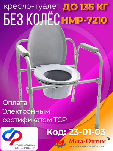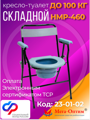 Мега-Оптим HMP-460 Кресло-стул с санитарным оснащением (без колес) для взрослых, пожилых людей и инвалидов, код ФСС 23-01-02
