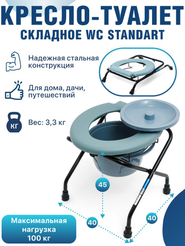 Кресло-туалет WC Standart переносной с санитарным оснащением дачный туалет походный, кресло-стул с санитарным оснащением без колес