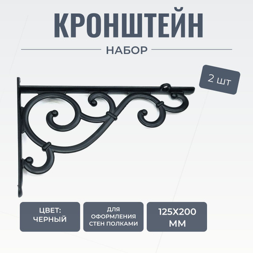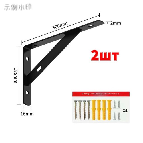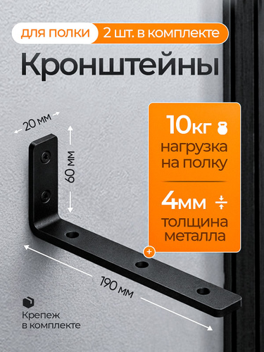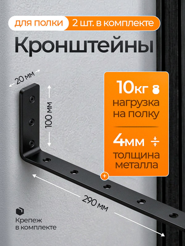 Кронштейны для полки металлический настенный , черный, крепление