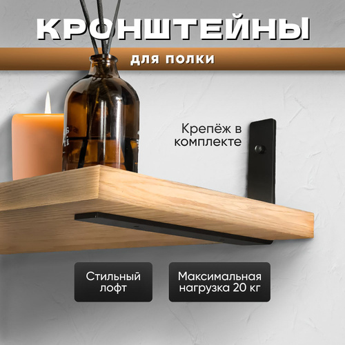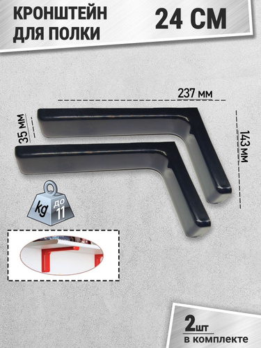 Держатель для полки на стену, кронштейн металлический, подвесной, для дома 24 см, набор 2 шт / черный
