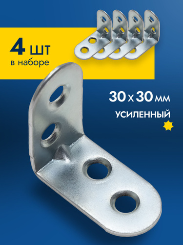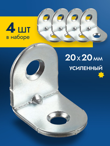 Уголок крепежный 4 шт 20x20 мм, усиленный полкодержатель, держатель для полок
