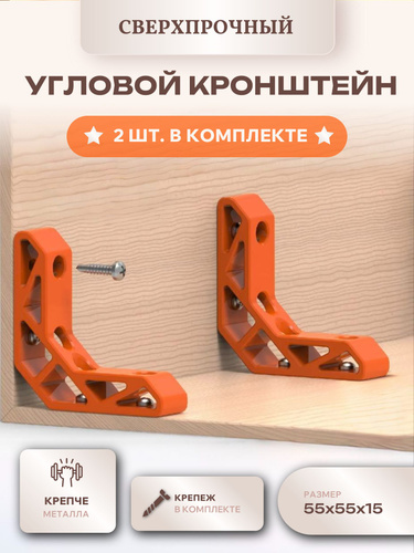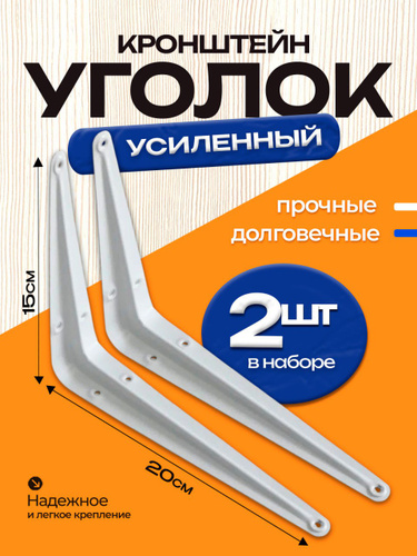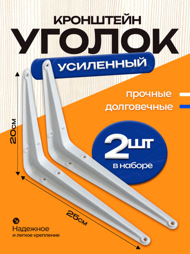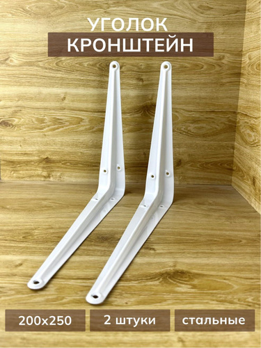 Уголок крепежный 2 шт 200x250 мм, крепление для полок, полкодержатель белый