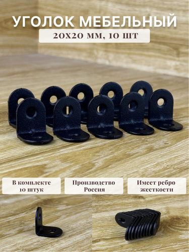 Уголок крепежный, кронштейн МК ЦВЕТ ЧЕРНЫЙ 20х20мм (10 шт в упак). Мебельный крепежный уголок.Усиленный полкодержатель, держатель для полок