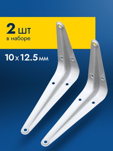Уголок крепежный 2 шт 100x125 мм, крепление для полок, полкодержатель белый