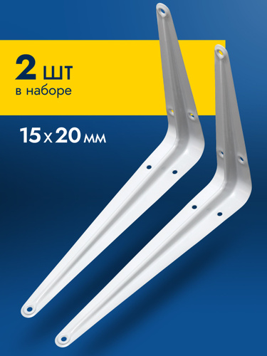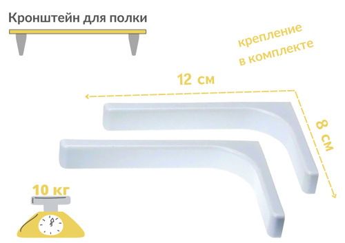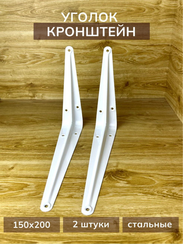 Кронштейн для полки 2 шт 150x200 мм, крепление для полок на стену, полкодержатель белый