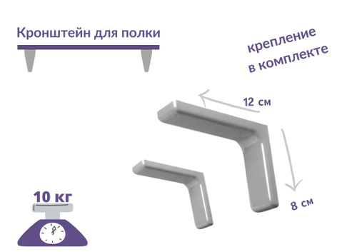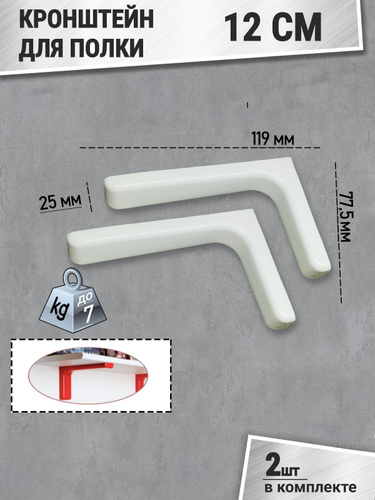 Кронштейн для полки 12 см, угловая консоль, полкодержатель, для полок, для стола, сталь, белый,крепеж в комплекте.