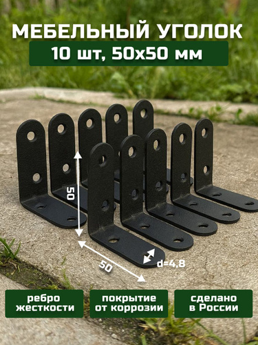 Уголок крепежный, кронштейн цвет черный МК 50х50 10 шт Мебельный крепежный уголок.Усиленный полкодержатель, держатель для полок