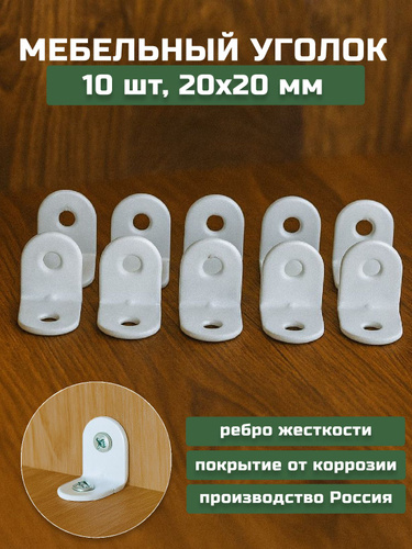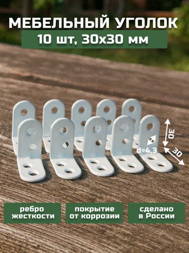 Уголок крепежный, кронштейн цвет белый МК 30х30 10 шт Мебельный крепежный уголок.Усиленный полкодержатель, держатель для полок