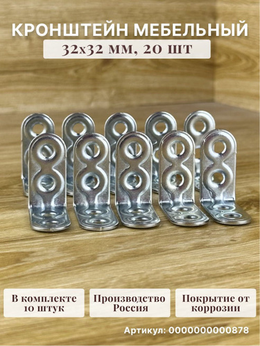 Уголок крепежный, кронштейн МК-1 цинк 32х32 мм (20 шт в упак). Мебельный крепежный уголок.Усиленный полкодержатель, держатель для полок