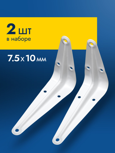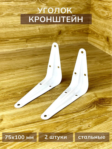 Уголок крепежный 2шт 75x100 мм, крепление для полок, полкодержатель белый