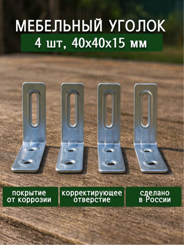 Уголок крепежный, кронштейн с корректирующим отверстием, регулировка 40х40х15х1.5 мм (4 шт в упак). Мебельный крепежный уголок.Усиленный полкодержатель, держатель для полок