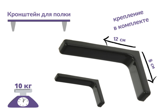 Кронштейн для полки 12 см, угловая консоль, полкодержатель, для полок, для стола, сталь,черный,крепеж в комплекте.