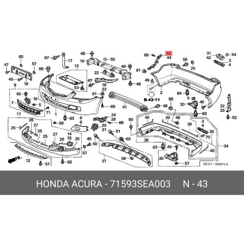 Крепление заднего бампера правое для Honda Accord 7 2003-2008, Хонда Аккорд 7 крепление заднего бампера правое HONDA 71593SEA003