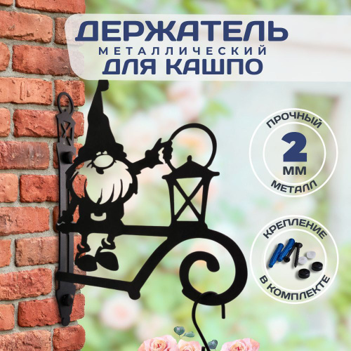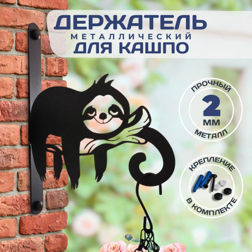 Держатель для кашпо настенный подвесной металлический Ленивец, кронштейн для кашпо уличный настенный