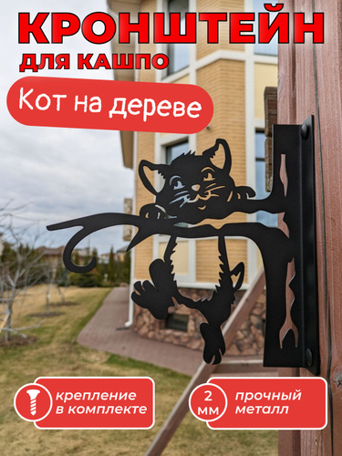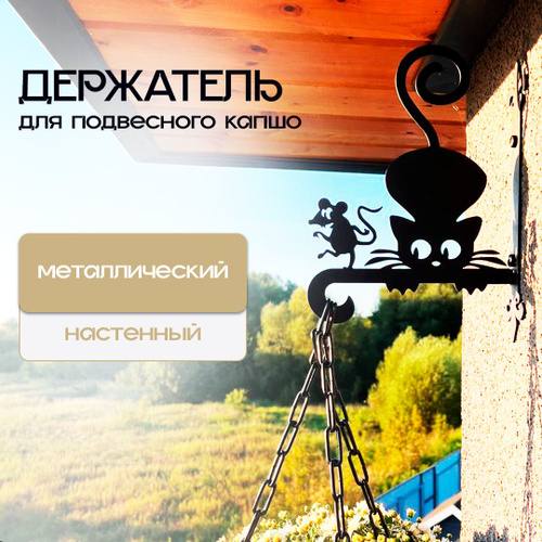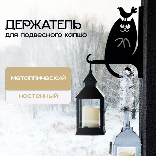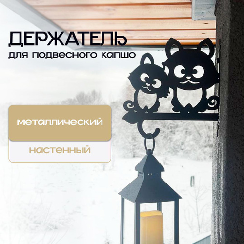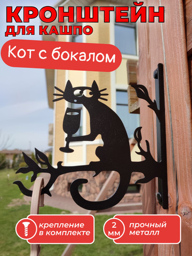 Кашпо подвесное Кот с бокалом, кронштейн для подвесного кашпо, держатель для цветов