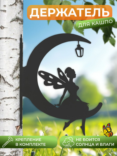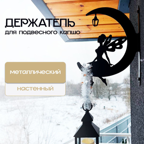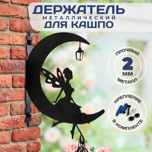Держатель для кашпо настенный подвесной металлический Фея на Луне, кронштейн для кашпо уличный настенный