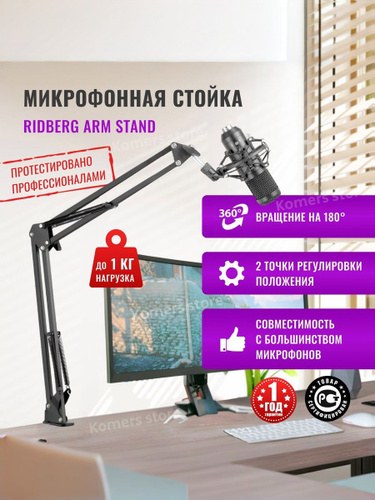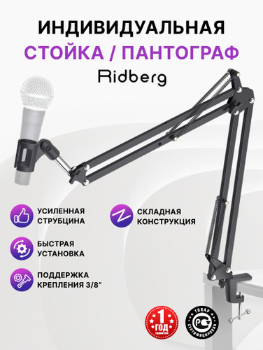 Пантограф для микрофона Ridberg Arm Stand LV-4697, стойка для микрофона, черный