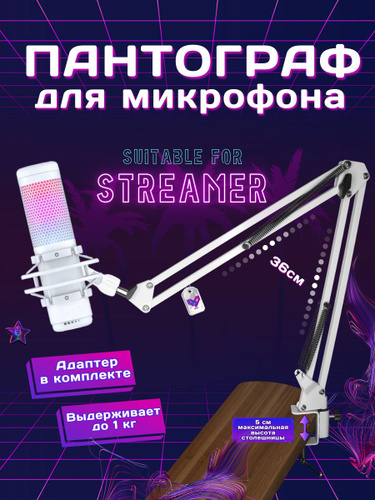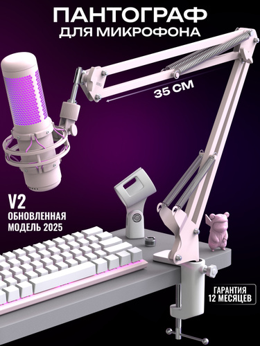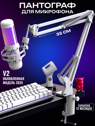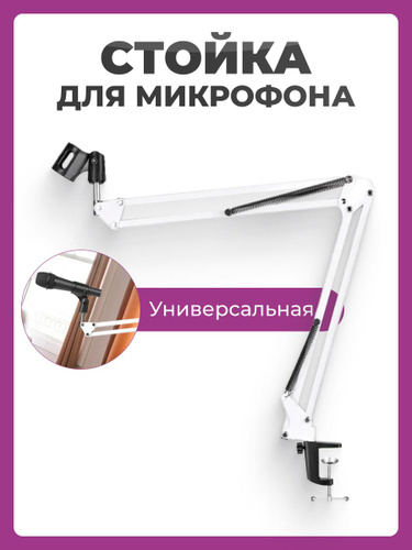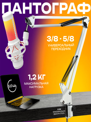 Пантограф для микрофона стойка NB-35 белая / Держатель для микрофона универсальный / Кронштейн подвижный настольный
